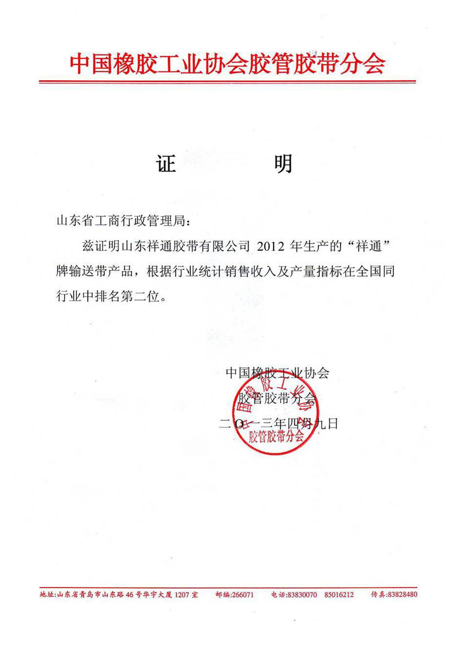 2013年獲中橡協(xié)副理事長(zhǎng)單位