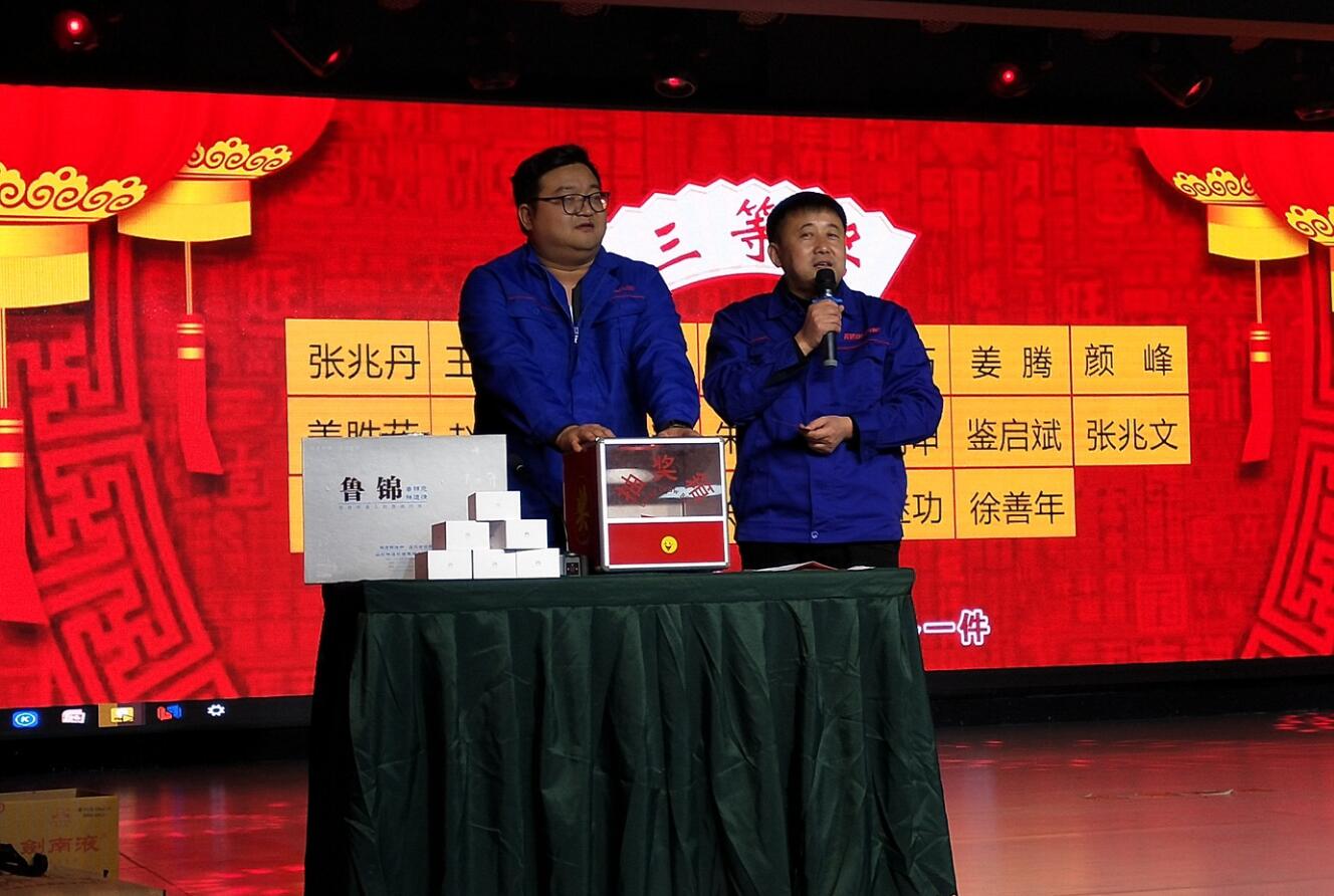 在10多分鐘的猜謎語環(huán)節(jié)結(jié)束后,聯(lián)歡會(huì)活動(dòng)進(jìn)入最激動(dòng)人心的一、二等獎(jiǎng)大獎(jiǎng)的抽取環(huán)節(jié)。首先由集團(tuán)公司總經(jīng)理張振宇先后抽出了獲得二等獎(jiǎng)的5名幸運(yùn)員工,他們的獎(jiǎng)品是華為手機(jī)一部,并由張振宇總經(jīng)理親自頒獎(jiǎng);接著由集團(tuán)董事長(zhǎng)張建魯抽出了獲得一等獎(jiǎng)的一名幸運(yùn)員工,她就是來自兗州分公司的臧勝霞,并由張建魯董事長(zhǎng)為其頒獎(jiǎng)。