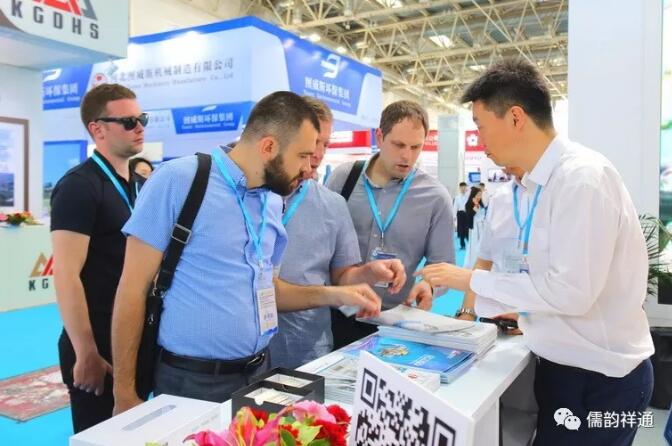 集團(tuán)副總經(jīng)理王冬、集團(tuán)銷管部經(jīng)理姜騰與國外客人在會展上。