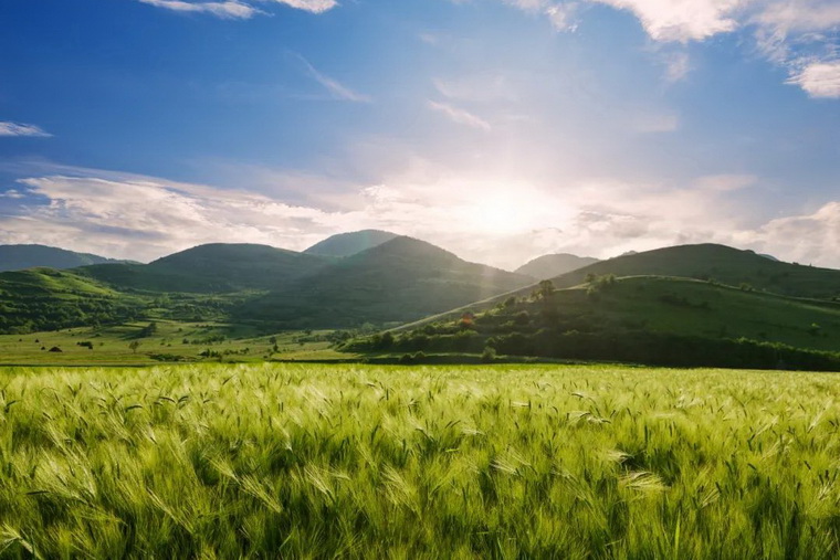 微風(fēng)吹起層層麥浪