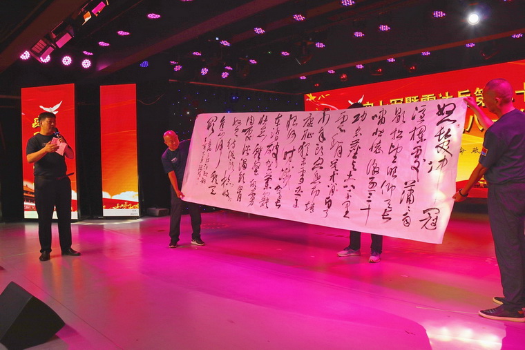 活動(dòng)中還進(jìn)行了原空七軍戰(zhàn)友組和老兵張建魯所在新兵班現(xiàn)場(chǎng)隊(duì)列訓(xùn)練以及張瑞祥、王盡文、閆德海戰(zhàn)友的書(shū)畫(huà)作品展示活動(dòng)。同時(shí),祥通集團(tuán)為向前來(lái)參加聯(lián)誼活動(dòng)的戰(zhàn)友們表達(dá)節(jié)日的祝賀,還準(zhǔn)備了豐富的禮品,并由張建魯、李益紅、孫向軍、林存弟、龍儒秋等老戰(zhàn)友主持進(jìn)行了一、二三等獎(jiǎng)的摸獎(jiǎng)活動(dòng)。而且沒(méi)有中獎(jiǎng)的戰(zhàn)友們均可獲得一份幸運(yùn)獎(jiǎng)。