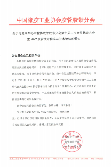 膠管膠帶貴陽年會再延期舉辦