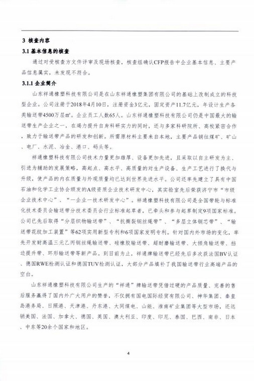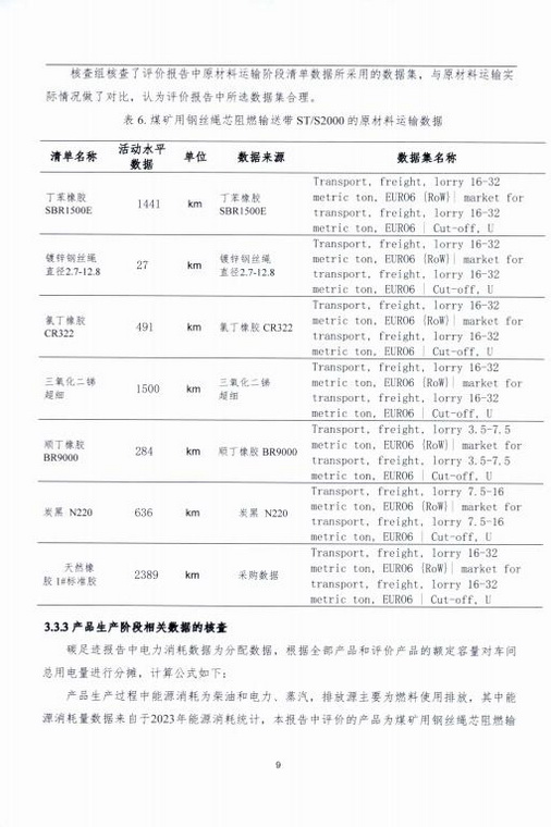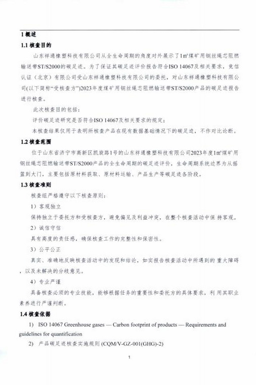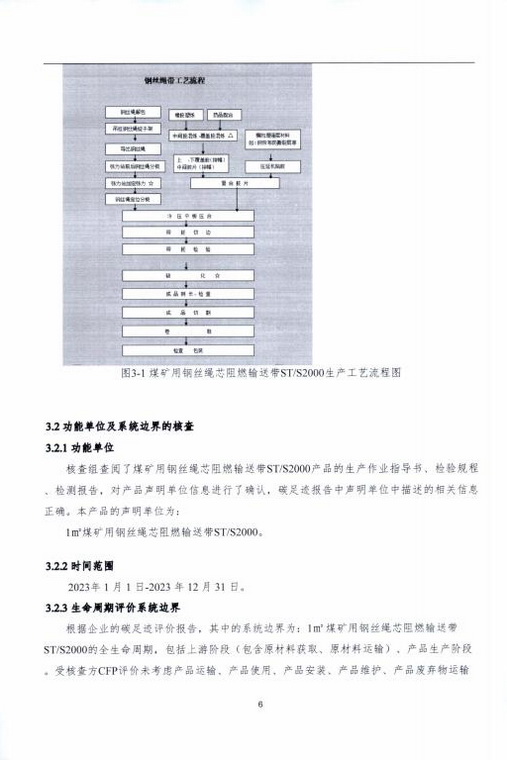 產(chǎn)品碳足跡第三方核查報告煤礦用鋼絲繩芯阻燃輸送帶 STS2000
