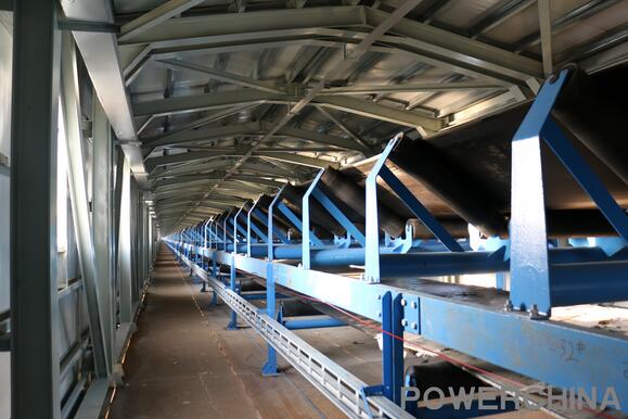 廊道配置單條長距離帶式輸送機(jī),皮帶帶寬2.4米,帶速每秒5米;頭部、中部、尾部共設(shè)置7個(gè)驅(qū)動(dòng)單元,設(shè)備54臺(tái)套,運(yùn)輸能力達(dá)到每小時(shí)13000噸,是目前國內(nèi)同行業(yè)中帶寬最寬、距離最長、速度最快的單條帶式輸送機(jī)。