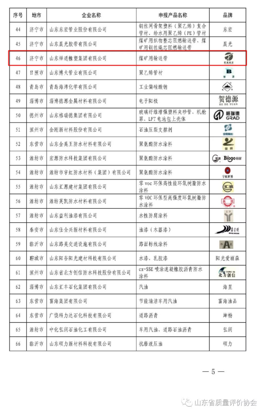 祥通輸送帶被認定為山東優(yōu)質(zhì)品牌產(chǎn)品