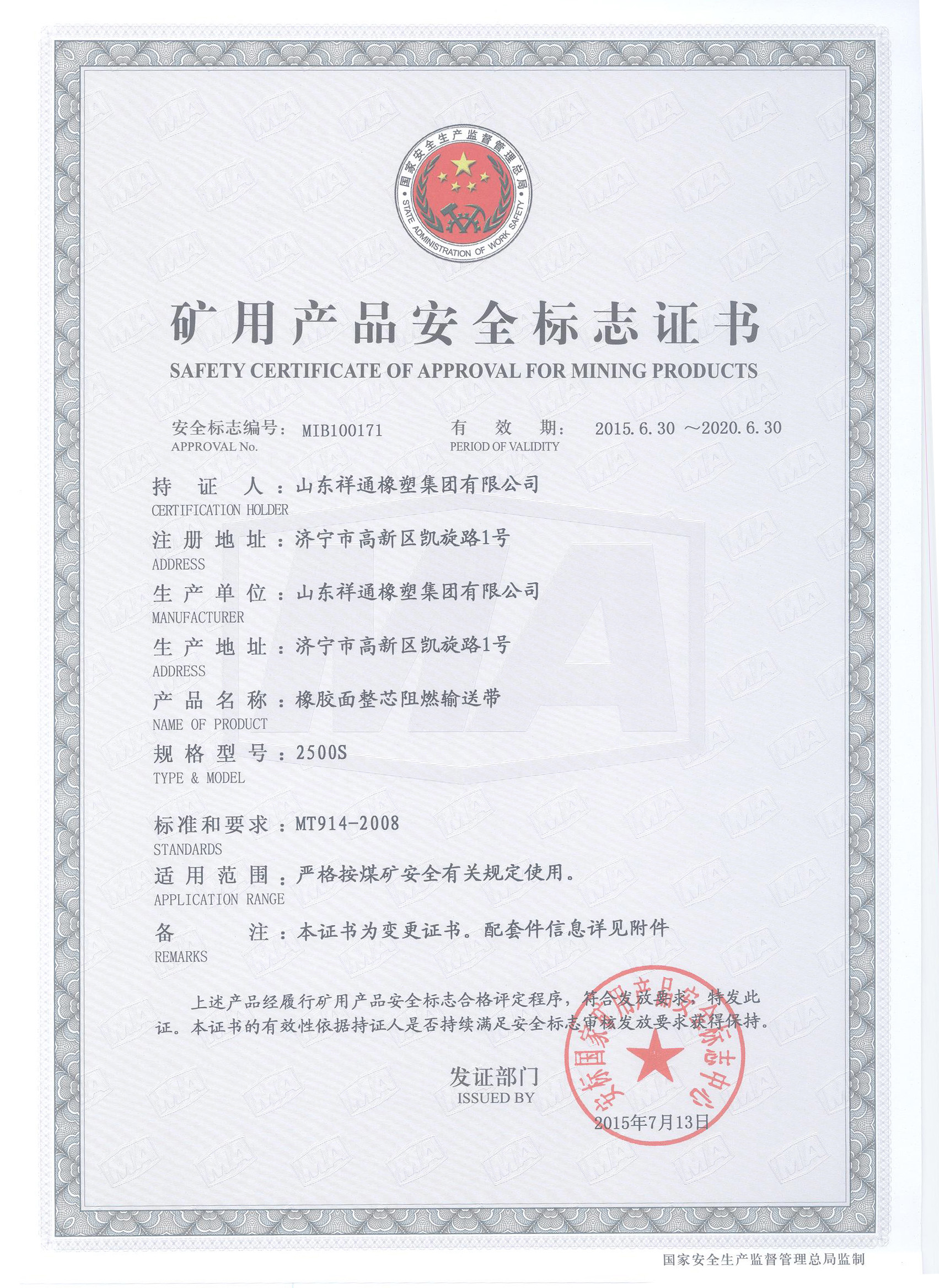 礦用產(chǎn)品安全標志證書
