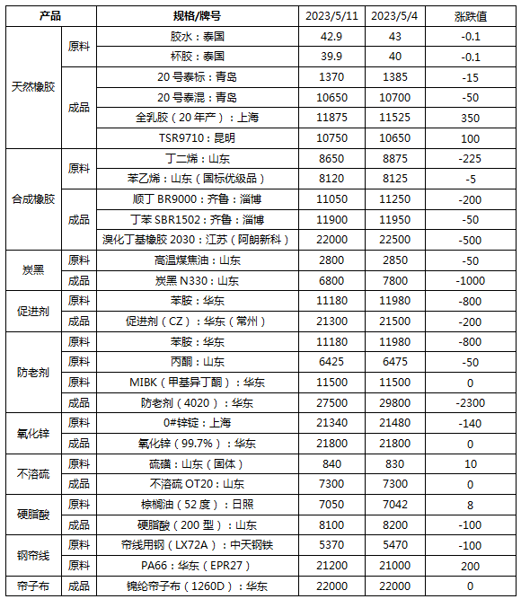 膠管膠帶主要原材料周度簡述 | 2023年5月12日