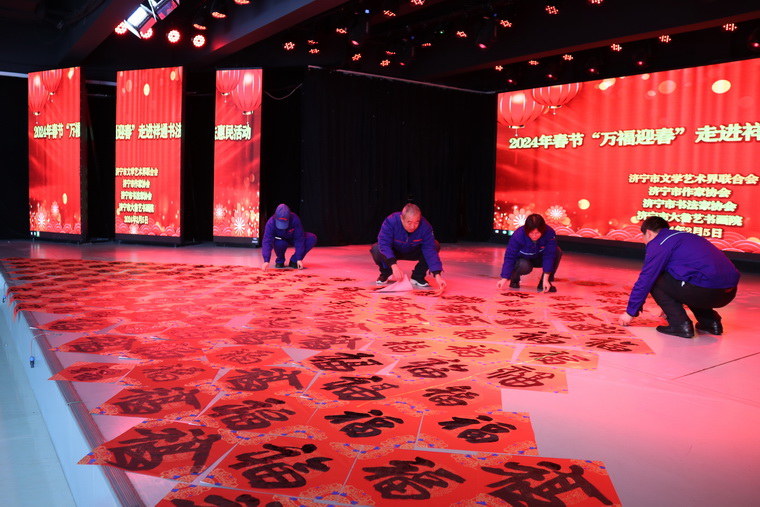 金兔留跡去,龍騰迎新春。2月5日,在甲辰龍年新春佳節(jié)來臨之際,為傳承中華優(yōu)秀傳統(tǒng)文化、營造歡樂祥和的節(jié)日氛圍,以書法藝術(shù)的形式,增強(qiáng)職工群眾文化獲得感、幸福感,由濟(jì)寧市文聯(lián)、濟(jì)寧市作協(xié)、濟(jì)寧市書協(xié)、大魯藝書畫院共同主辦的“2024年春節(jié)‘萬福迎春’走進(jìn)祥通書法惠民活動(dòng)”在祥通多功能廳成功舉行。濟(jì)寧市文聯(lián)黨組書記、主席張作昌,濟(jì)寧市文聯(lián)黨組成員、副主席黃秀杰;濟(jì)寧市書協(xié)主席謝長偉,中國書協(xié)會(huì)員、濟(jì)寧市書協(xié)秘書處成員高衛(wèi)兵,濟(jì)寧市女書畫家協(xié)會(huì)秘書長晉丹;濟(jì)寧市作協(xié)主席張建魯,副主席范金泉、副秘書長周中祥,濟(jì)寧經(jīng)開區(qū)作協(xié)副主席紀(jì)秀目;大魯藝書畫院黨支部書記、常務(wù)副院長張瑞祥,大魯藝書畫院副院長王盡文、王大中,兗州區(qū)文聯(lián)原主席張金鵬和祥通職工代表、媒體記者齊聚一堂,現(xiàn)場題寫春聯(lián)福字,喜迎龍年春節(jié)。