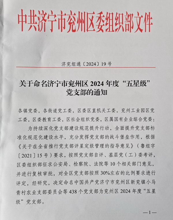 按照黨支部自評、基層黨(工)委考評,區(qū)委組織部征求公安局、檢察院、法院等10個相關部門意見,并進行復核審批,近日,山東祥通膠帶有限公司黨支部被中共濟寧市兗州區(qū)委組織部評為兗州區(qū)2024年度“五星級”黨支部。這一榮譽的獲得,不僅是對公司持續(xù)深化黨支部規(guī)范化、標準化建設和充分發(fā)揮黨支部戰(zhàn)斗堡壘作用的高度肯定,也是對公司未來發(fā)展的鼓勵和鞭策。